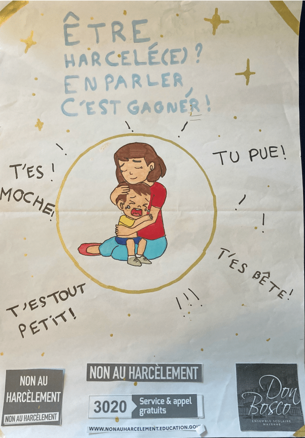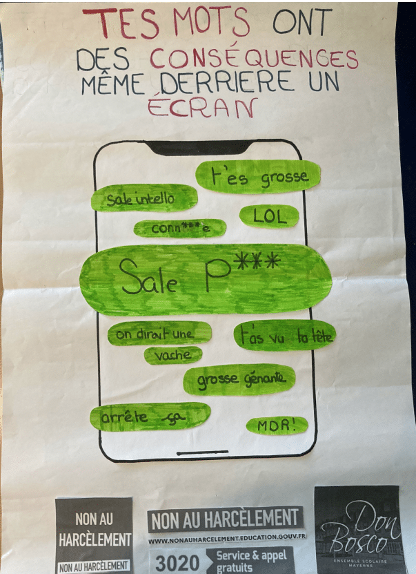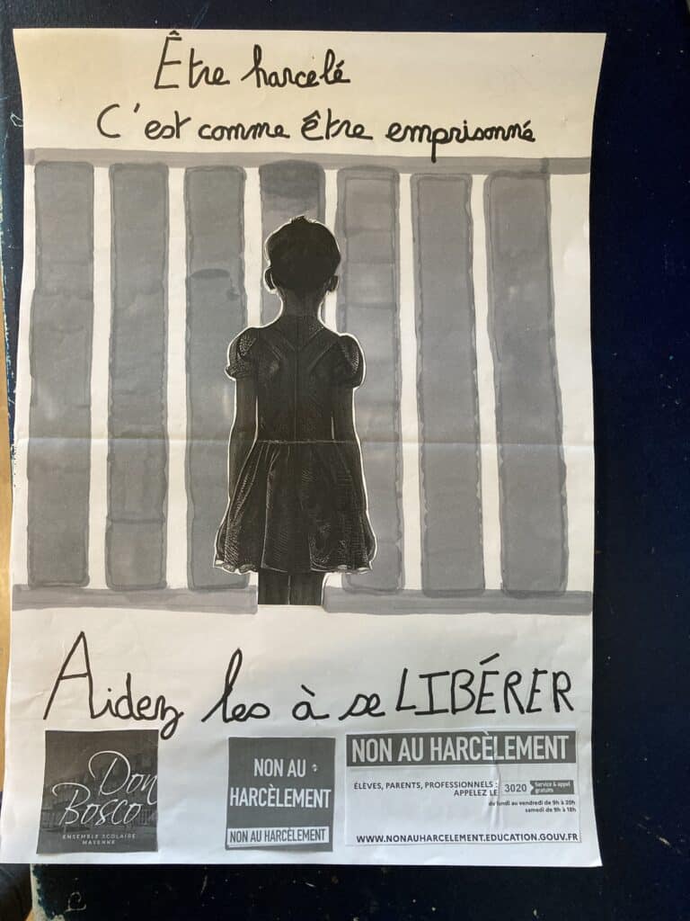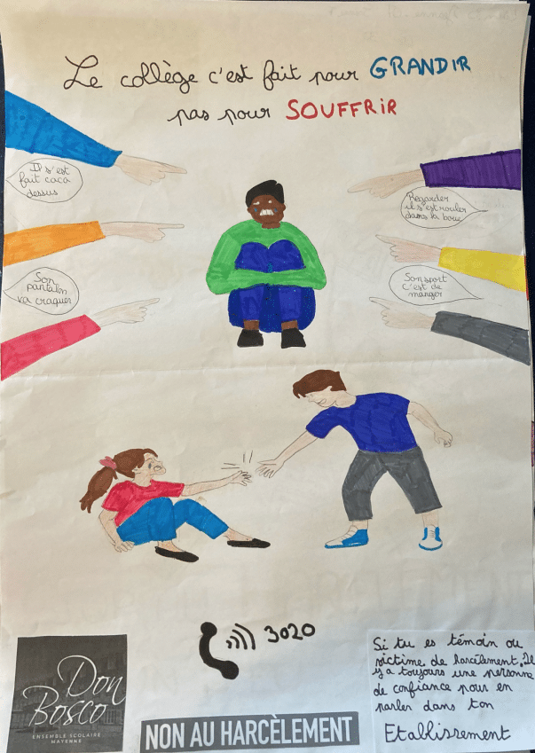 Dans le cadre de l’enseignement moral et civique, les élèves de 6e ont réalisé des affiches de sensibilisation contre le harcèlement. Toutes ont été exposées au CDI, où l’ensemble des collégiens était invité à voter pour leur affiche préférée.