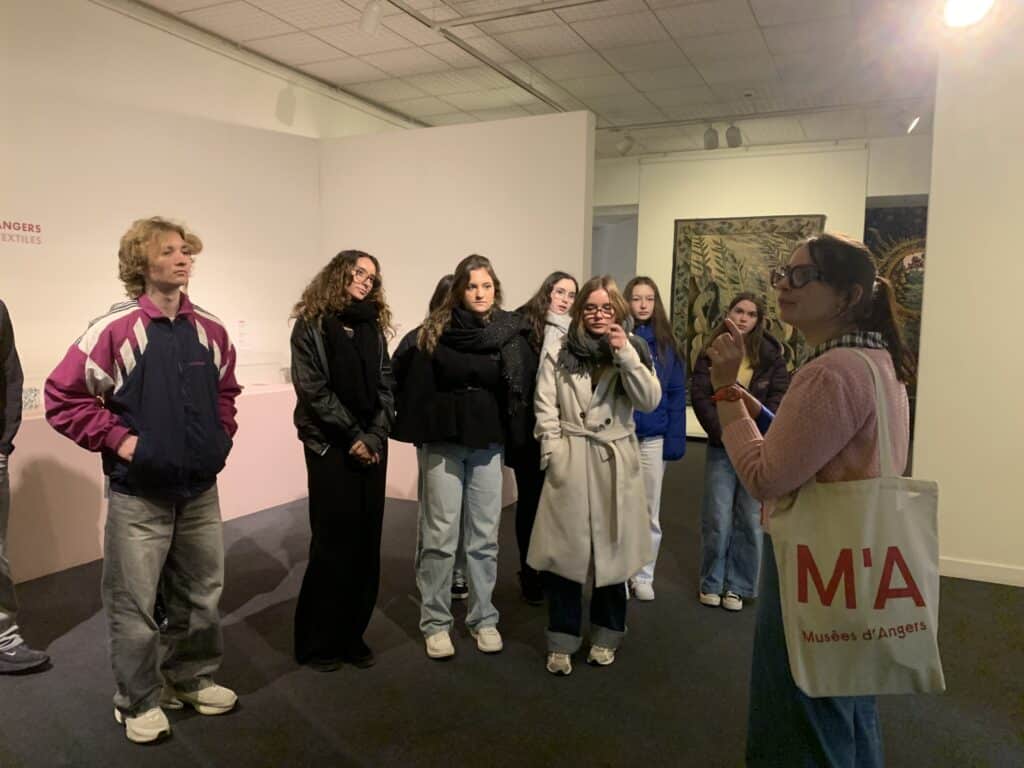 Les élèves de terminale Arts plastiques et de terminale Humanités Littérature et Philosophie ont découvert les collections exceptionnelles présentées aux musée Jean Lurçat et musée des Beaux-Arts ce jeudi 27 novembre sur Angers. Ils ont été surpris par l’originalité des matériaux requis pour la pratique du tissage contemporain pour l’ensemble du concours international intitulé « tisser le futur » pour lequel ils ont découvert de petites œuvres extrêmement touchantes et déconcertantes en perles de verre, de scoubidou, en feutre, plastique, papier, métal, plumes de paon, fibres de bananes… Après avoir nourri leur sensibilité créatrice et réfléchi à leur propre souhait de matériau original, ils s’exerceront à leur tour à cette pratique en classe grâce à la venue sur l’établissement ce mardi de l’artiste Constance BOULAY.