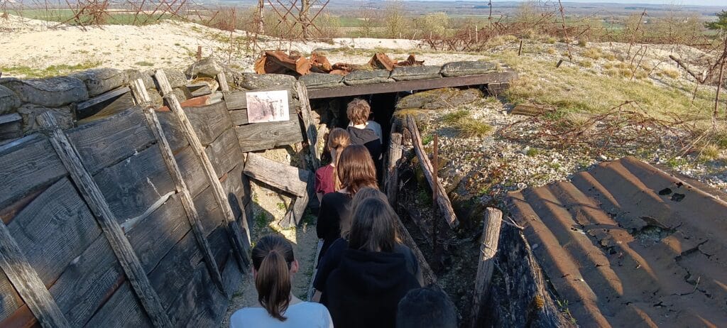 Le voyage a débuté par une immersion dans l’enfer de la Grande Guerre. À la Main de Massiges, les élèves ont pu parcourir les tranchées restaurées, saisissant mieux la réalité physique du combat de 1914-1918.