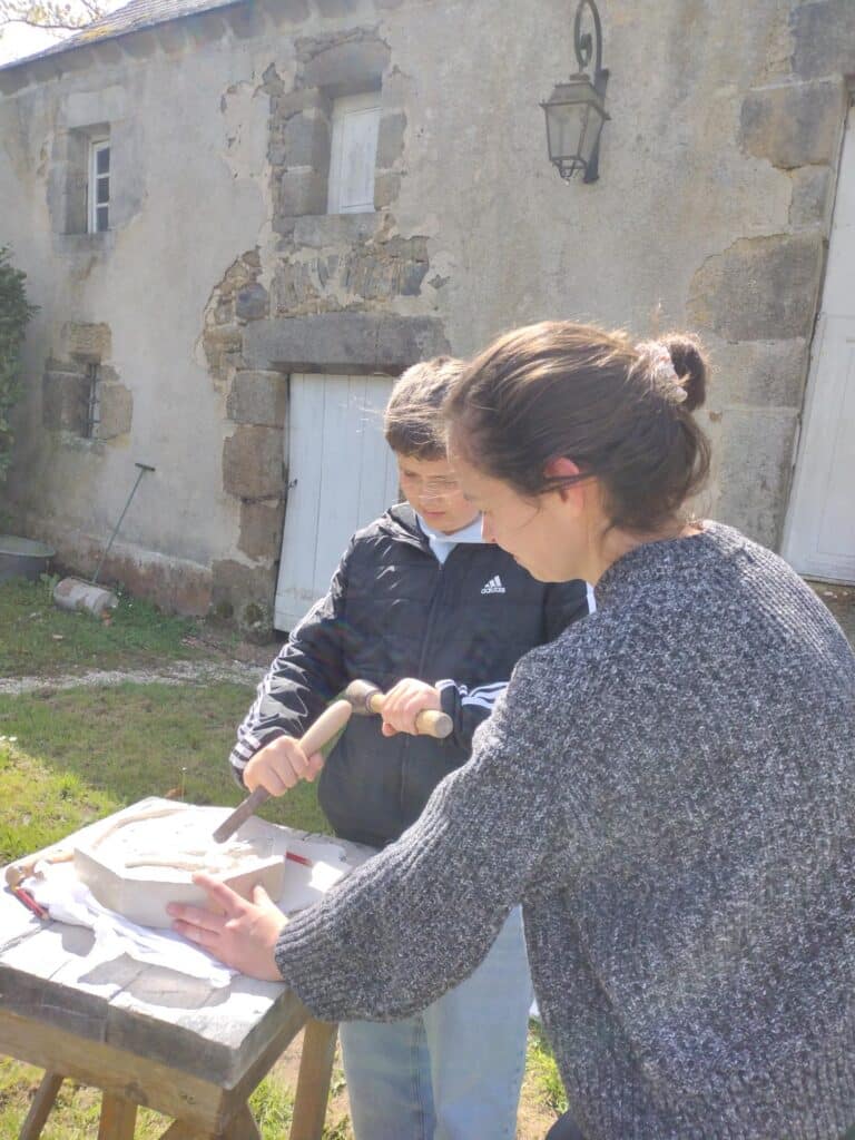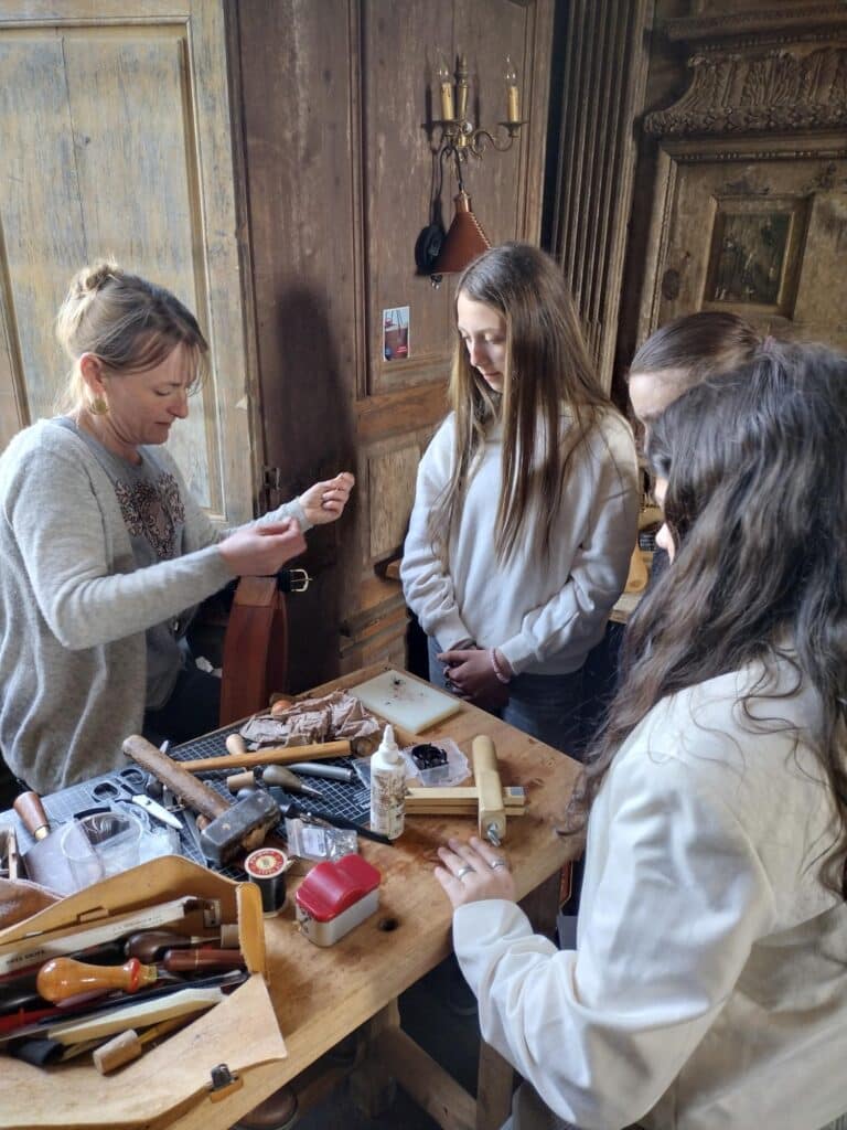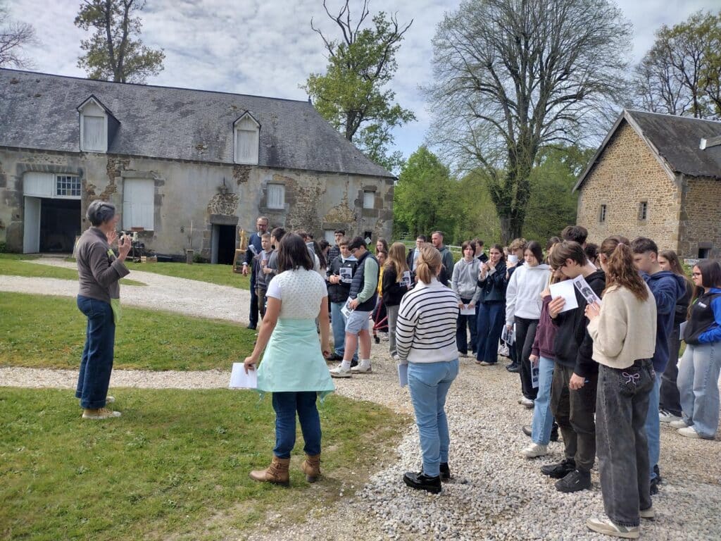 Vendredi 10 avril, à partir de 14h, les collégiens du dispositif Avenir, 9 élèves de 4ème, 13 de 4ème SEGPAS et 14 de 3ème ainsi que deux élèves de seconde ont donc rencontré une douzaine d’artisans d’art. Dans le magnifique cadre du château du Fresne, ils ont pu observer et participer aux ateliers proposés dans la cour ou au sein même du château.